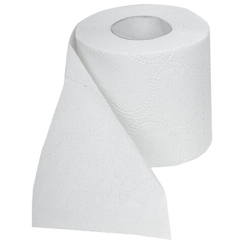 Двухслойная туалетная бумага белого цвета с тиснением. Отличается мягкостью, обладает повышенной прочностью во влажном состоянии. Расход в 2 раза меньше обычной бумаги.