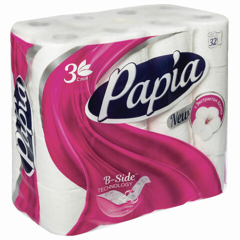 Бумага туалетная бытовая, спайка 32 шт., 3-слойная (32х16,8 м), PAPIA, белая, 5080734