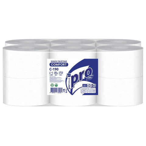 Бумага туалетная 200 метров, PROtissue (T2) COMFORT, 1-слойная, белая, КОМПЛЕКТ 12 рулонов, С190