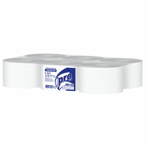 Бумага туалетная 215 м с центральной вытяжкой PROtissue (T8) PREMIUM, 2-слойная, белая, КОМПЛЕКТ 6 шт., С352