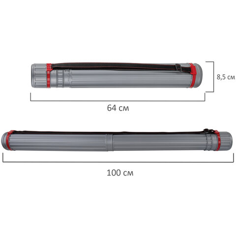 Тубус для чертежей телескопический, длина 64-100 см, формат А0, диаметр 8,5 см, с ремнем, серый, BRAUBERG, 271257