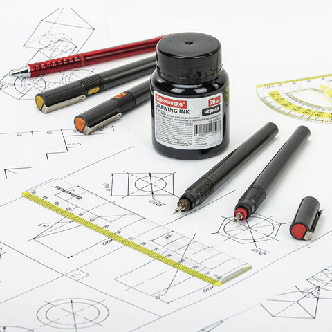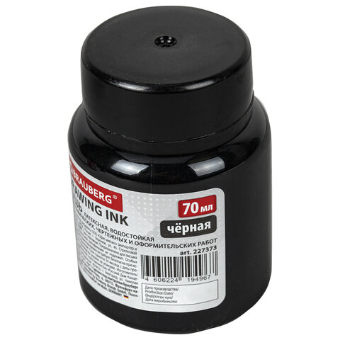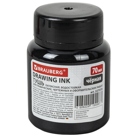 Тушь чертежная BRAUBERG, 70 мл, черная, водостойкая, латексная (черчение, графика, оформление), 227373