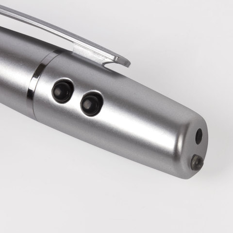 Лазерная указка 3 в 1: с точкой красного свечения, LED-фонарем и шариковой ручкой. Является эффективным средством для привлечения внимания аудитории к информации, отображенной на доске или экране.