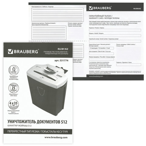 Уничтожитель документов (шредер) BRAUBERG S12 предназначен для уничтожения документов, компакт-дисков и пластиковых карт (банковских, дисконтных и прочих), потерявших актуальность.