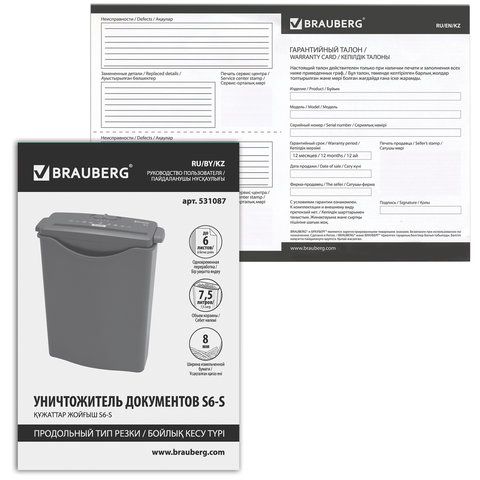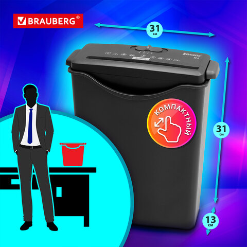Уничтожитель документов (шредер) BRAUBERG S6-S предназначен для уничтожения документов и пластиковых карт (банковских, дисконтных и прочих), потерявших актуальность.