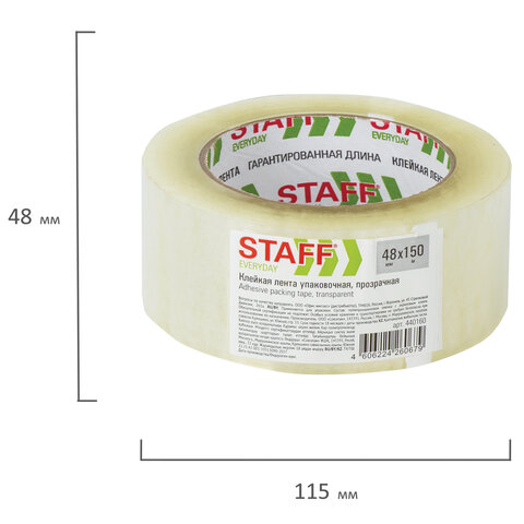 Клейкая лента 48 мм х 150 м упаковочная, прозрачная, толщина 40 микрон, STAFF EVERYDAY, 440160