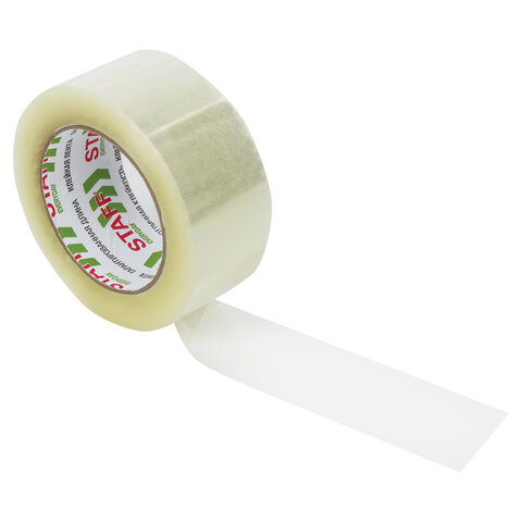 Упаковочная клейкая лента STAFF активно используется в торговле, промышленности, быту и подходит для оперативной упаковки с помощью диспенсера или вручную.