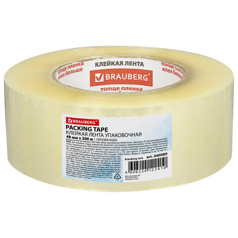 Упаковочная клейкая лента BRAUBERG активно используется в торговле, промышленности, быту и подходит для оперативной упаковки с помощью диспенсера или вручную. Отличается высокой адгезией клея (слипанием с поверхностью) и стойкостью к разрыву.