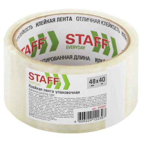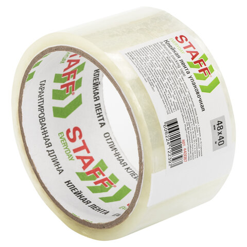 Клейкая лента упаковочная 48 мм x 40 м, прозрачная, толщина 40 микрон, STAFF, 440087