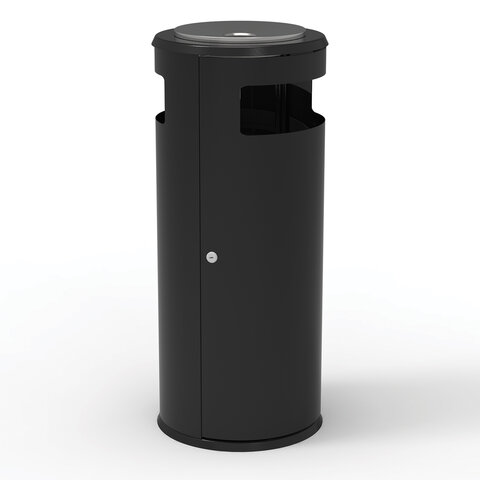 Урна уличная с пепельницей, кольцом для мешка, створка с замком, 955х455х455 мм, 70 литров, черная, "Метрополь-2"