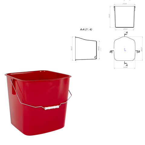 Ведро УНИВЕРСАЛЬНОЕ 25 л, КРАСНОЕ, подходит для уборочных тележек, уборки, хранения, пластик, 609755, 25EC/5