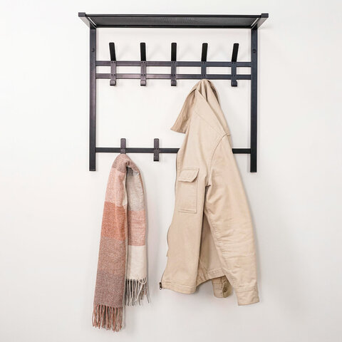 Вешалка настенная с полкой 2 яруса "Торонто-22", 585х670х270 мм, 9 крючков, металл, черная, ВСПТ22 Ч