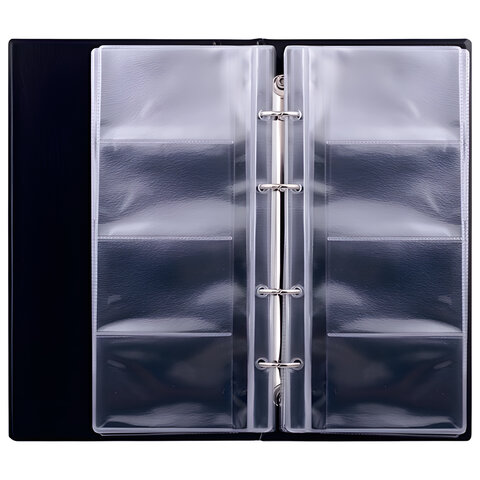 Визитница на 4-х кольцах BRAUBERG, четырехрядная, на 160 визиток, черная, 231825
