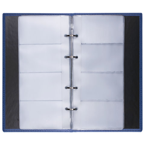 Визитница на кольцах BRAUBERG "Favorite", на 240 визиток, под фактурную кожу, темно-синяя, 231664