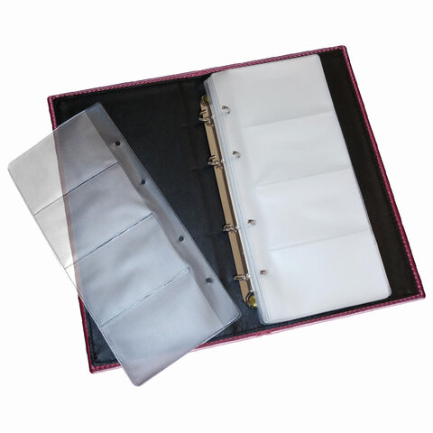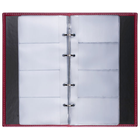 Визитница на кольцах BRAUBERG "Imperial", на 240 визиток, под гладкую кожу, бордовая, 231665