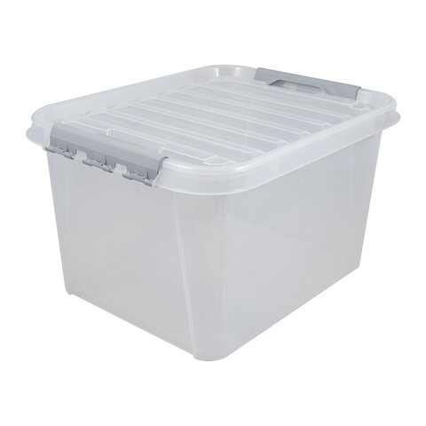 Ящик-контейнер 36 л с КРЫШКОЙ НА ЗАЩЕЛКАХ "ПРОФИ", 29х50х39 см штабелируемый, ПРОЧНЫЙ, прозрачный, 437950000