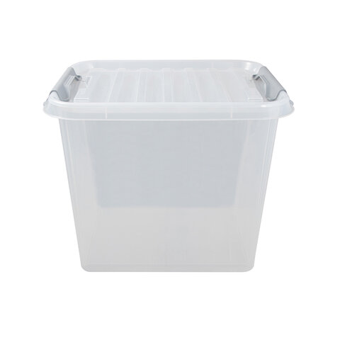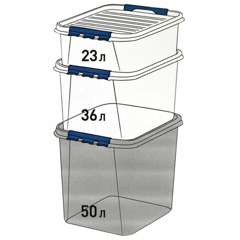 Ящик-контейнер 50 л с КРЫШКОЙ НА ЗАЩЕЛКАХ "ПРОФИ", 40х50х39 см, штабелируемый, ПРОЧНЫЙ, прозрачный, 437960000