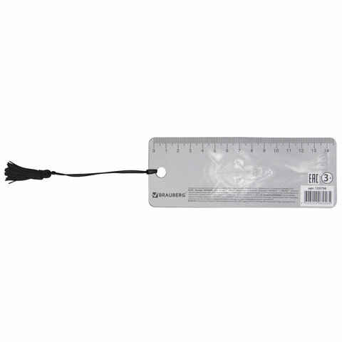 Закладка для книг с линейкой 3D-ОБЪЕМНАЯ BRAUBERG, "Волк", с декоративным шнурком, 125756