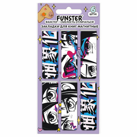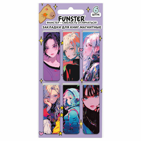 Закладки для книг МАГНИТНЫЕ, "5 ДИЗАЙНОВ МИКС", 6 штук, 60x20 мм, FUNSTER (ФАНСТЕР), 116652