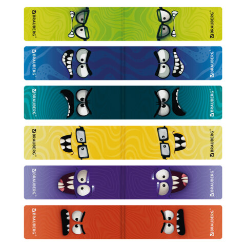 Закладки для книг МАГНИТНЫЕ, "МОНСТРИКИ", набор 6 штук, 60x20 мм, BRAUBERG, 116995