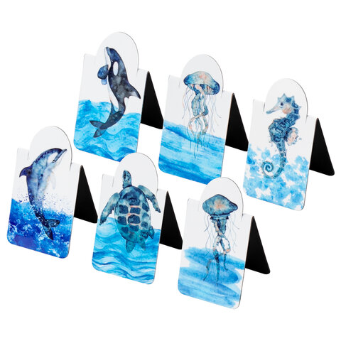 Закладки для книг МАГНИТНЫЕ c высечкой, "MARINE LIFE", набор 6 шт., 35х25 мм, BRAUBERG, 113163