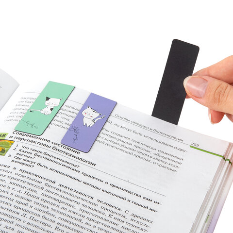 Закладки для книг МАГНИТНЫЕ, "CATS", набор 6 шт., 60x20 мм, BRAUBERG, 113159