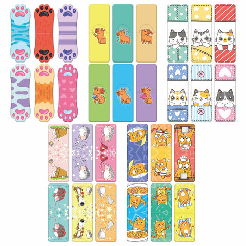 Закладки для книг МАГНИТНЫЕ, "ЯРКИЙ МИКС", комплект 30 штук, 35x25 мм, FUNSTER (ФАНСТЕР), 116657