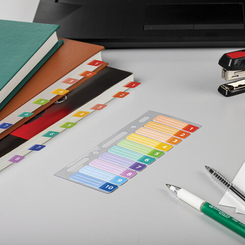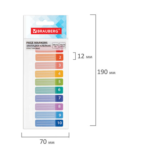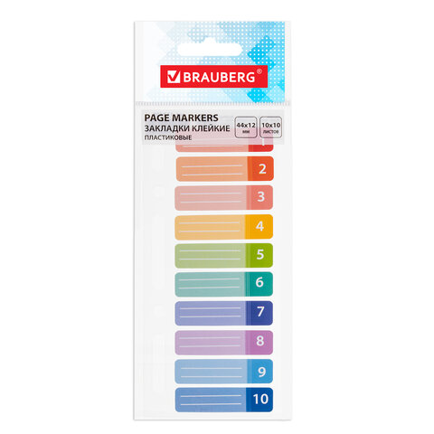 Пластиковые закладки BRAUBERG с рисунком в виде цифр акцентируют внимание на важных страницах ежедневника, журнала, каталога и др.