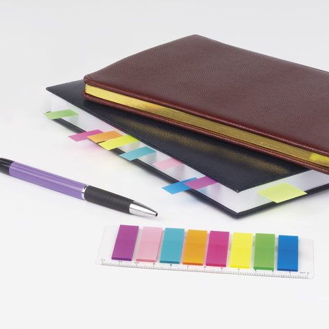 Яркие пластиковые полупрозрачные закладки BRAUBERG акцентируют внимание на важных страницах книги, журнала, каталога и др.