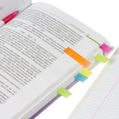 Клейкие закладки-этикетки удобны для использования в книгах, журналах, ежедневниках. Разные цвета помогут легко найти нужную информацию. Материал закладок позволяет делать на них надписи ручкой или карандашом.