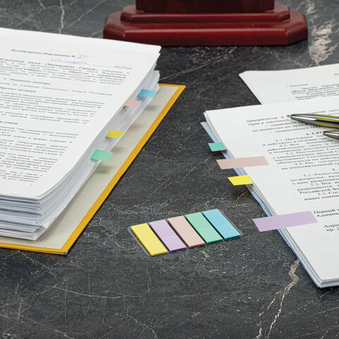Пластиковые полупрозрачные закладки пастельных тонов BRAUBERG MACAROON акцентируют внимание на важных страницах книги, журнала, каталога и др.