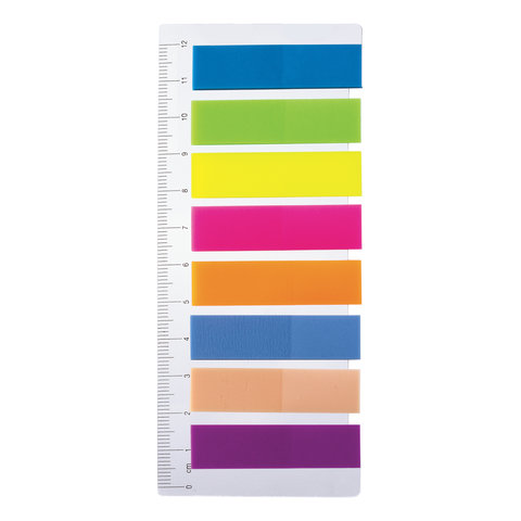 Закладки клейкие неоновые STAFF, 45х12 мм, 200 штук (8 цветов х 25 листов), на пластиковой линейке 12 см, 129356