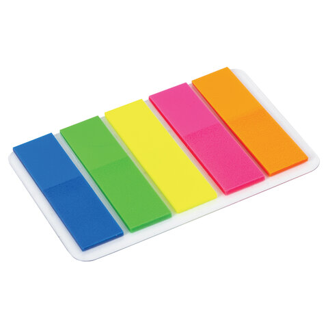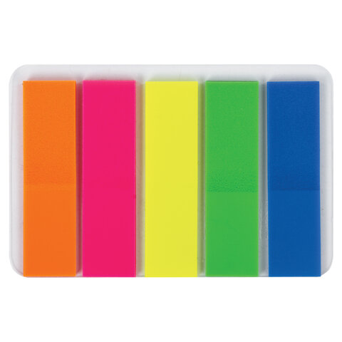 Закладки клейкие неоновые ЮНЛАНДИЯ, 45х12 мм, 100 штук (5 цветов х 20 листов), на пластиковом основании, 111354