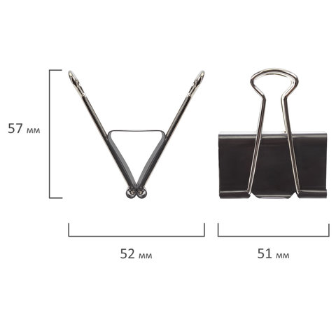Зажимы для бумаг большие STAFF "EVERYDAY", КОМПЛЕКТ 12 шт., 51 мм, на 230 листов, черные, картонная коробка, 224610