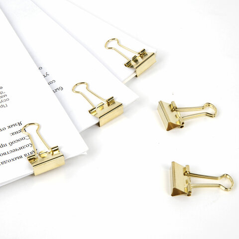 Зажимы для бумаг BRAUBERG EXTRA, КОМПЛЕКТ 12 шт., 19 мм, на 60 л., золотистые, европодвес, 229586