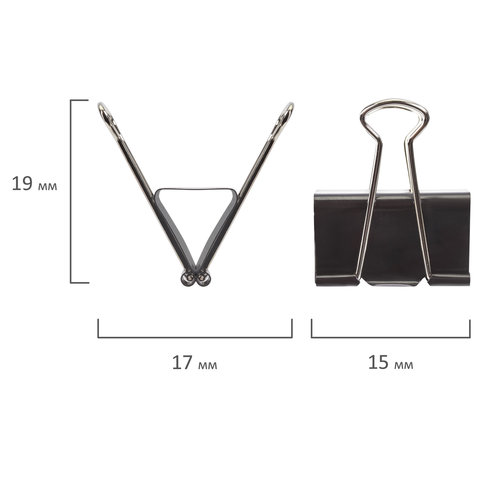Зажимы для бумаг BRAUBERG, КОМПЛЕКТ 12 шт., 15 мм, на 45 листов, черные, картонная коробка, 223969