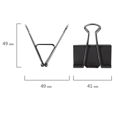 Зажимы для бумаг BRAUBERG, КОМПЛЕКТ 12 шт., 41 мм, на 200 листов, черные, картонная коробка, 221538