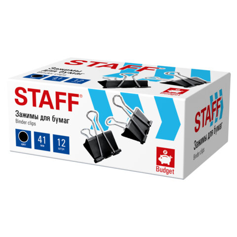 Зажимы для бумаг STAFF ECO, КОМПЛЕКТ 12 шт., 41 мм, 200 листов, черные, картонная коробка, 274034