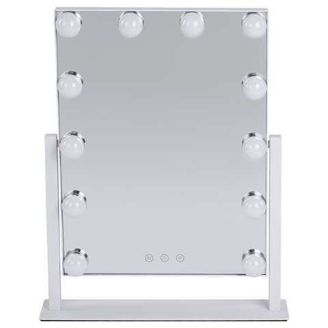Зеркало для макияжа гримерное с подсветкой, 12 LED-ламп, 3 режима свечения, размер 29х38 см, работа от сети 220V, цвет белый, BRABIX, 609336