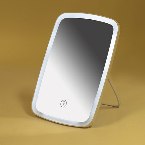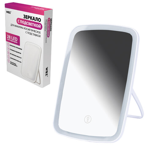 Зеркало настольное с LED-подсветкой для макияжа, 24х17 см, 3 режима свечения, аккумулятор 800 mAh, цвет белый, WBZ (ВБЗ), 609333