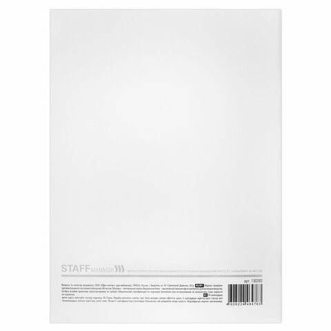 Журнал проверки противопожарного состояния помещений STAFF оформлен в соответствии с правилами бухгалтерского и управленческого учета. Отличается высоким качеством обложки и внутреннего блока.