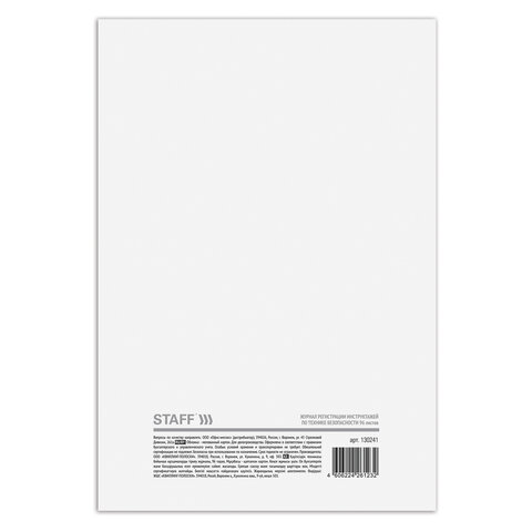 Журнал регистрации инструктажа по технике безопасности, 96 л., картон, типографский блок, А4 200х290 мм, STAFF, 130241