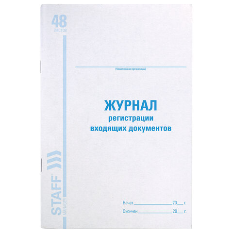 Журнал регистрации входящих документов, 48 л., картон, блок офсет, А4 200х290 мм, STAFF, 130084