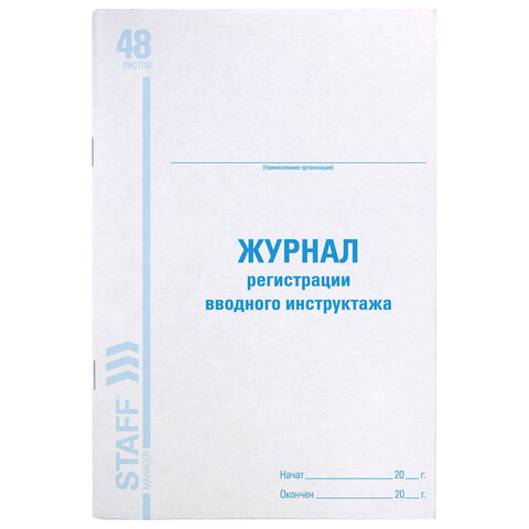 Журнал регистрации вводного инструктажа, 48 л., картон, блок офсет, А4 200х290 мм, STAFF, 130083