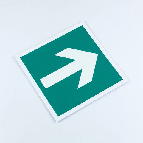 Знак эвакуационный "Направляющая стрелка", КОМПЛЕКТ 3 штук, 200х200х2 мм, фотолюминесцентный, пластик, E02-01, Е02-01