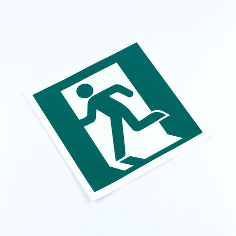 Комплект знаков "Выход здесь (лево)" изготовлен в соответствии c ГОСТ, отраслевыми нормами, правилами и инструкциями.