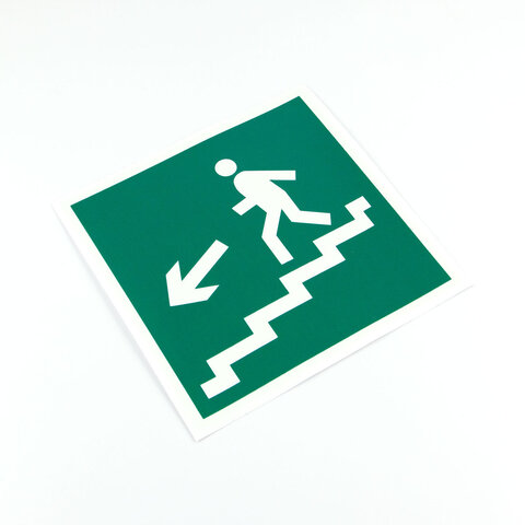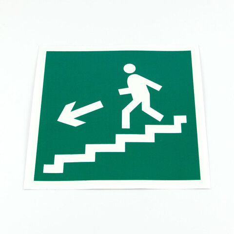 Комплект знаков "Направление к эвакуационному выходу по лестнице вниз, налево" изготовлен в соответствии c ГОСТ, отраслевыми нормами, правилами и инструкциями.