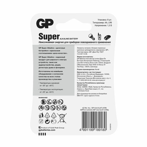 Количество в упаковке 8 (4 AA +4 ААА)
