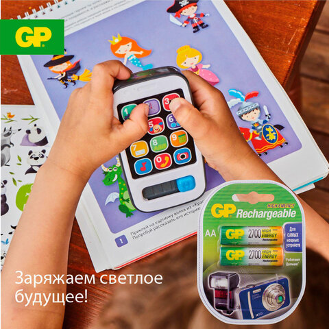 Батарейки аккумуляторные Ni-Mh пальчиковые КОМПЛЕКТ 2 шт. АА (HR6) 2650 mAh, GP, 270AAHC-2DECRC2
