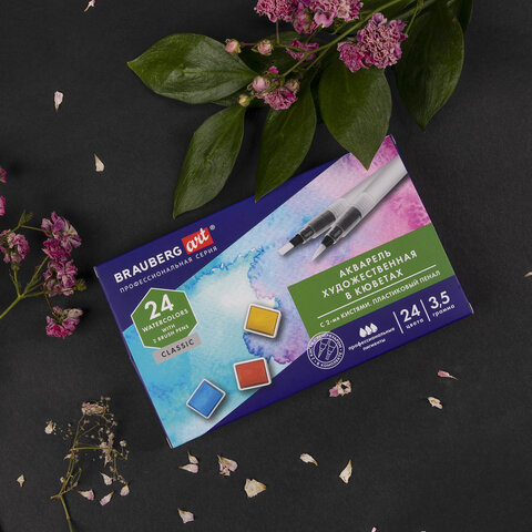 Художественная акварель профессионального качества в кюветах BRAUBERG ART CLASSIC предназначена для живописи.